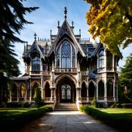 white background isolated autumn leaf greenery isolated mansion gothic architecture gothic mansion gardenSimilar Photos
