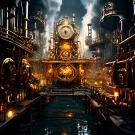 machinery ornate cryogenic steam-powered intricate gear cog dystopian mysteriou vessel mechanic engine science fiction crafted ornamented tech dark metallic yellow steamboat craftsmanship yellow-gold gold mechanical futuristic metal steamSimilar Photos