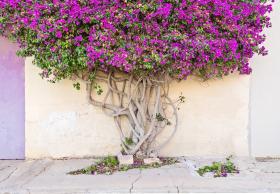 Closeup on a branch tree paperflower trunk whose branches cover the wall of a building nominated t20 Oz0bO2