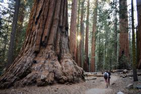 Friends are walking among the giant trees in the beautiful sequoia forest sequoia and kings canyon t20 GgZWow