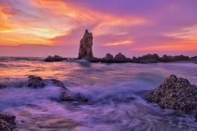 Big stone with long exposure in the dramatic sunset sky t20 2wnkx0