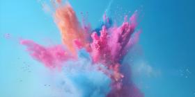 Vibrant Colored Powder Explosion on Solid Background - Ai Generated
