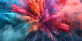 Vibrant Colored Powder Explosion on Solid Background - Ai Generated