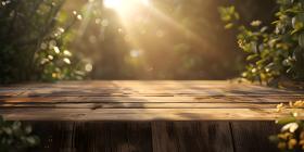 Natural Wooden Table with Blurred Bokeh Background - Ai Generated