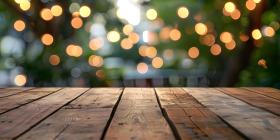 Natural Wooden Table with Blurred Bokeh Background - Ai Generated