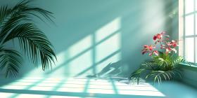 Abstract studio background for product presentation room with shadows, flowers - Ai Generated