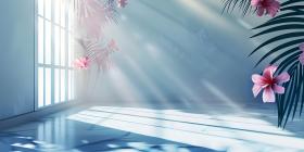 Abstract studio background for product presentation room with shadows, flowers - Ai Generated