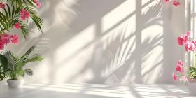 Abstract studio background for product presentation room with shadows, flowers - Ai Generated