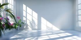 Abstract studio background for product presentation room with shadows, flowers - Ai Generated