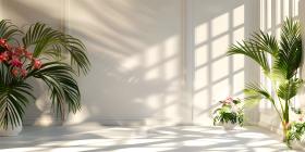 Abstract studio background for product presentation room with shadows, flowers - Ai Generated