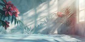 Abstract studio background for product presentation room with shadows, flowers - Ai Generated