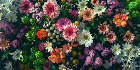 Colorful bouquet of spring flowers as background Top View - Ai Generated