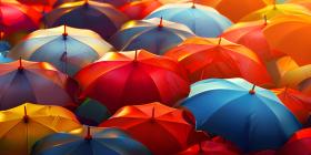 Colorful Umbrellas Display Vibrant Background Scene, Umbrellas in Bright Colors - Ai Generated