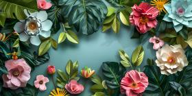Creative layout made of flowers and leaves with paper card - Ai Generated