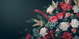 Creative layout made of flowers and leaves with paper card - Ai Generated
