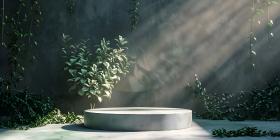 Podium for product stand with plant background and cinematic light, front view - Ai Generated