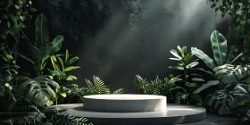 Podium for product stand with plant background and cinematic light, front view - Ai Generated