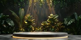 Podium for product stand with plant background and cinematic light, front view - Ai Generated