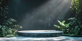 Podium for product stand with plant background and cinematic light, front view - Ai Generated