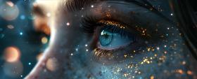 Closeup of Eye with Bokeh light, shimmering blur spot lights - A