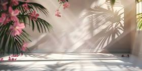 Abstract studio background for product presentation room with shadows, flowers - Ai Generated
