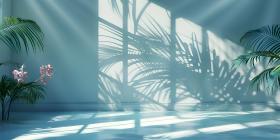 Abstract studio background for product presentation room with shadows, flowers - Ai Generated