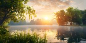 Summer Sunrise Natural Background, Background of Natural Summer Sunrise, Sunrise Landscape - Ai Generated
