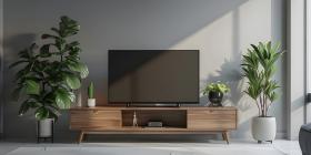 Minimalist Living Room: Television on TV Stand with Modern Table