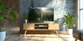 Minimalist Living Room: Television on TV Stand with Modern Table