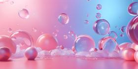 Abstract background with pink and blue balls, soap bubbles and bubbles - Ai Generated