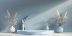 Minimalist scene with round podium and geometric shapes for product presentation - Ai Generated