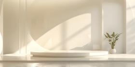 Minimalist scene with round podium and geometric shapes for product presentation - Ai Generated