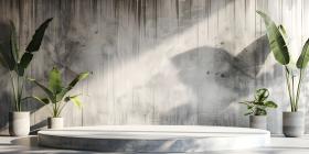 Minimalist scene with round podium and geometric shapes for product presentation - Ai Generated