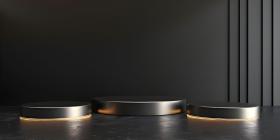 3d rendering of podium for product display in minimal style with black marble wall background - Ai Generated