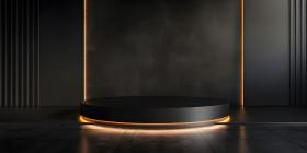 3d rendering of podium for product display in minimal style with black marble wall background - Ai Generated