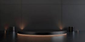 3d rendering of podium for product display in minimal style with black marble wall background - Ai Generated