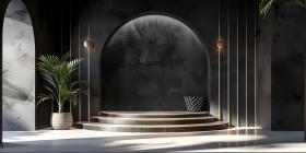 3d rendering of podium for product display in minimal style with black marble wall background - Ai Generated
