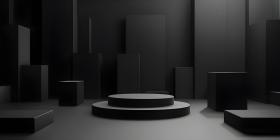 3d rendering of podium for product display in minimal style with black marble wall background - Ai Generated