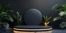 3d rendering of podium for product display in minimal style with black marble wall background - Ai Generated
