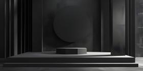 3d rendering of podium for product display in minimal style with black marble wall background - Ai Generated