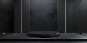 3d rendering of podium for product display in minimal style with black marble wall background - Ai Generated