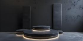 3d rendering of podium for product display in minimal style with black marble wall background - Ai Generated