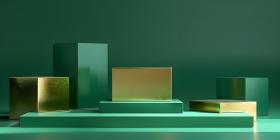 3d render of podium for product display with gold and green marble background - Ai Generated