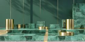 3d render of podium for product display with gold and green marble background - Ai Generated