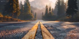 Road in the tropics with palm trees and blue sky background - Ai Generated
