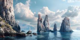 Fantasy alien planet, Mountain and lake 3D illustration - Ai Generated