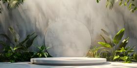 3d rendering of white podium for product presentation with palm leaf shadow on the wall - Ai Generated