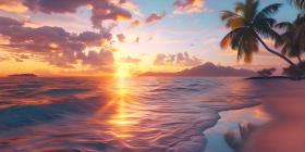 Beautiful sunset over the sea with palm trees - Ai generated