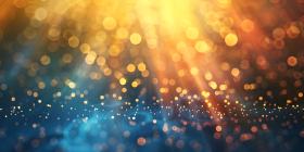 Abstract bokeh background with golden light rays and glittering stars - Ai generated