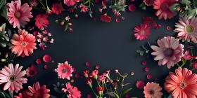 Flowers composition, Frame made of beautiful flowers on black background - Ai Generated
